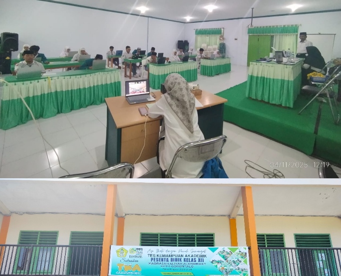 Ujian Tes Kemampuan Akademik (TKA) di Madrasah Aliyah Alkhairaat Kota Gorontalo berlangsung lancar dan kondusif selama 4 hari pelaksanaan, Senin–Kamis (3–6/11/2025) yang bertempat di LAB Komputer. Kegiatan ini merupakan bagian dari evaluasi pembelajaran untuk mengukur kemampuan akademik santri kelas 12 pada berbagai mata pelajaran.