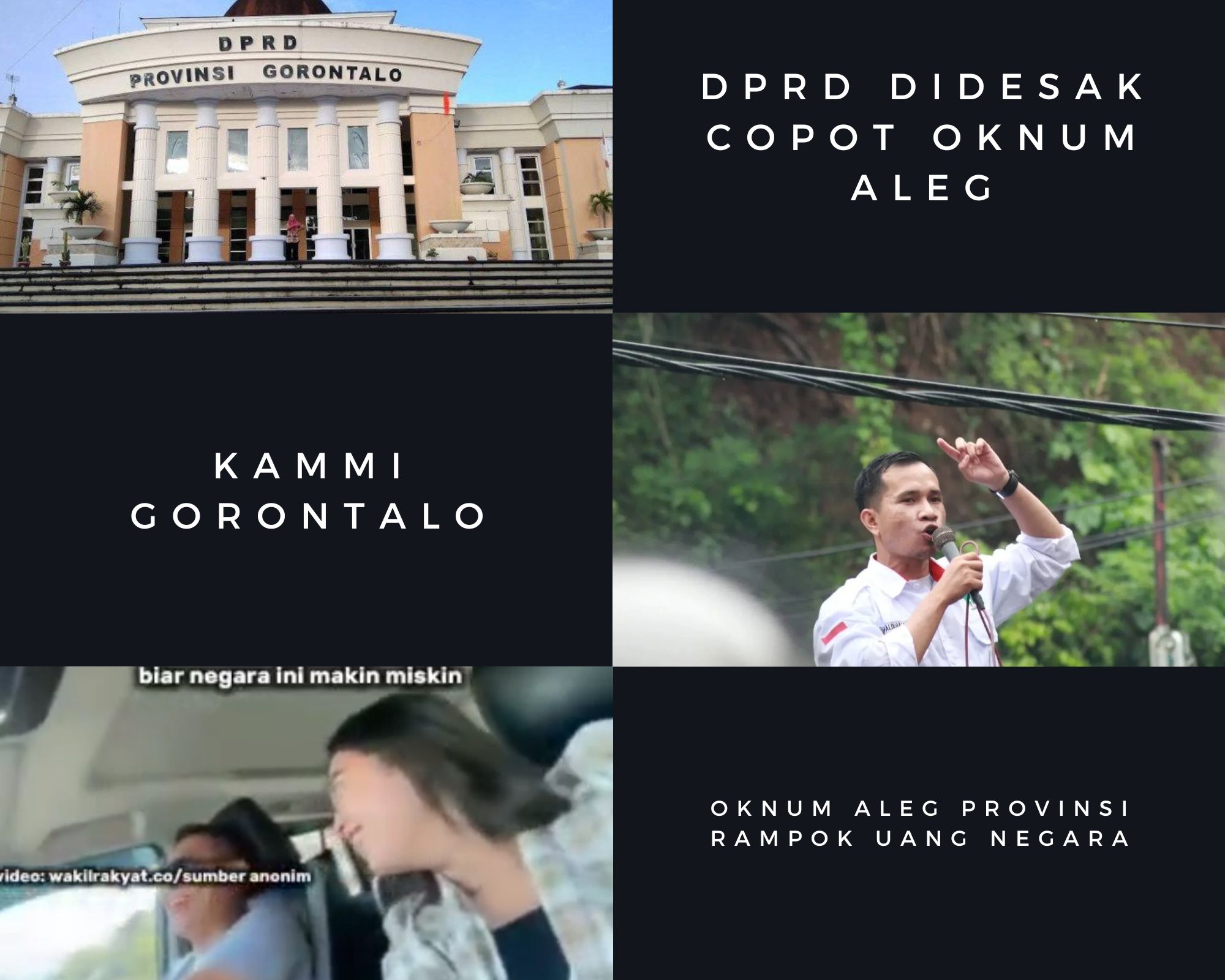 Kesatuan Aksi Mahasiswa Muslim Indonesia (KAMMI) Wilayah Gorontalo menegaskan sikapnya atas pengakuan Anggota DPRD Provinsi Gorontalo, Wahyudin Moridu, yang melalui akun Facebook pribadinya telah mengakui kebenaran video viral berisi ucapannya tentang “merampok uang negara”. Permintaan maaf yang disampaikan di media sosial tidak cukup untuk menyelesaikan persoalan yang telah mencoreng nama baik DPRD serta melukai kepercayaan publik.